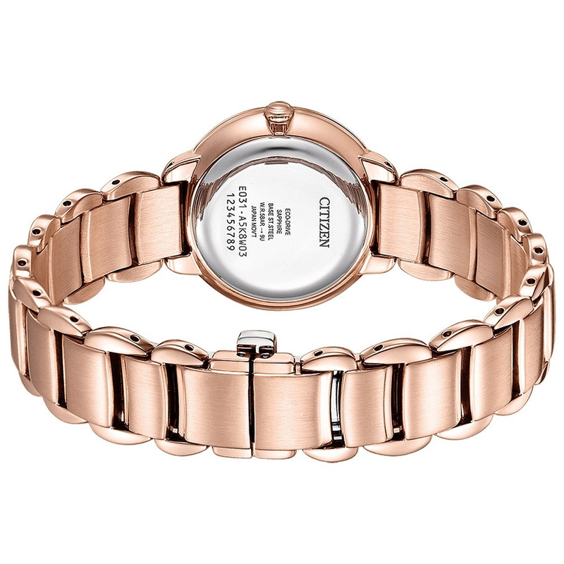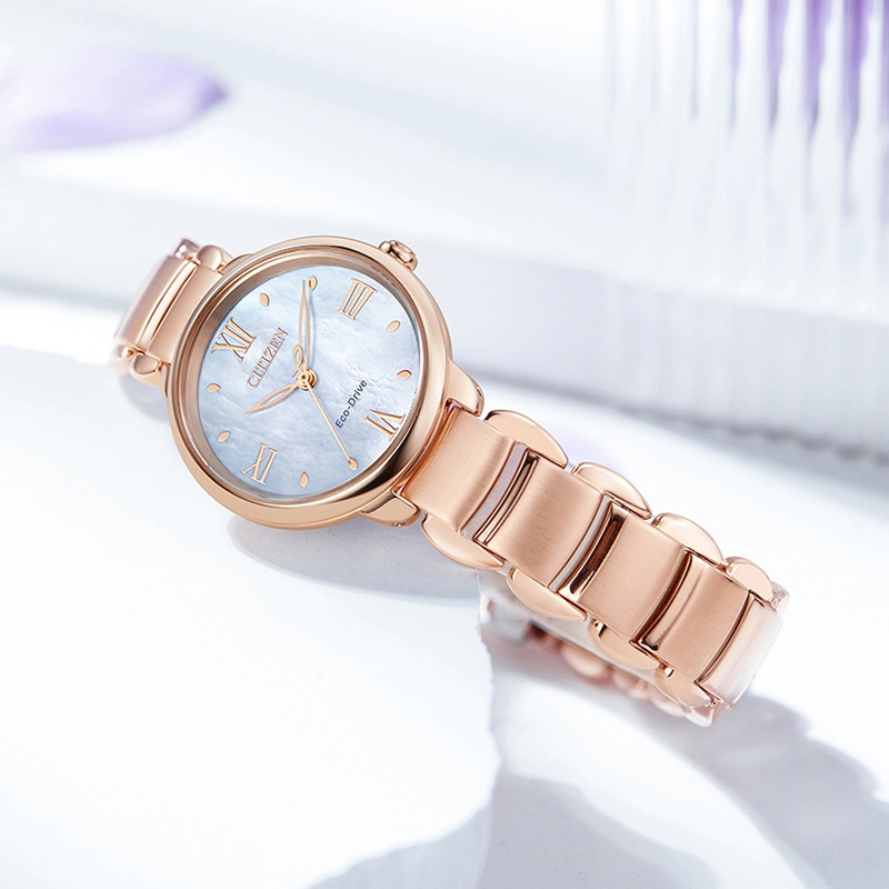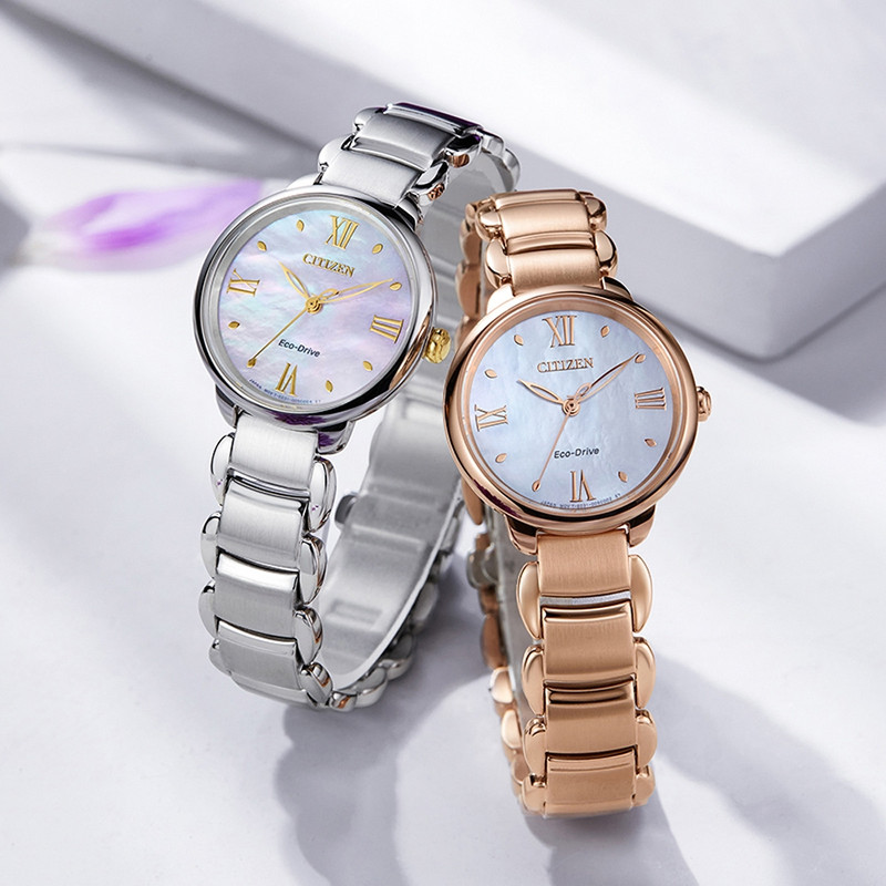 این طرح از ساعت مچی های زنانه برند سیتیزن از طرح های کلاسیک و مجلسی این برند می باشد و از طراحی خاص و منحصر به فردی برخوردار بوده و دارای بند و بدنه استیل با رنگ رزگلد و صفحه ی صدفی می باشد. این مدل از ساعت مچی های زنانه سیتی زن اکودرایو بوده و قابلیت شارژ با روشنایی و نور را دارند. طراحی های کمپانی سیتیزن منحصر به فرد میباشند این مدل هم ساعت بسیار شیک و ساده میباشد و در عین سادگی با تک رنگ بودن توجه بسیاری جلب میکند. میتواند کادوی مناسبی برای تولد، روز زن، روز دختر و ولنتاین باشد. همچنین این ساعت قابلیت ذخیره شارژ باطری تا 6ماه را دارد.