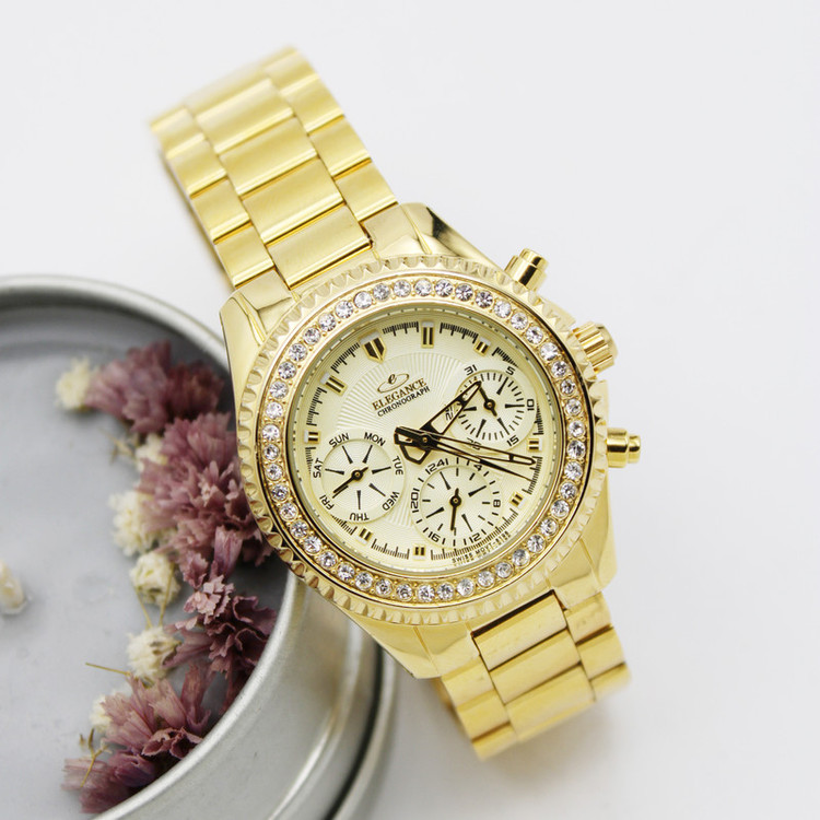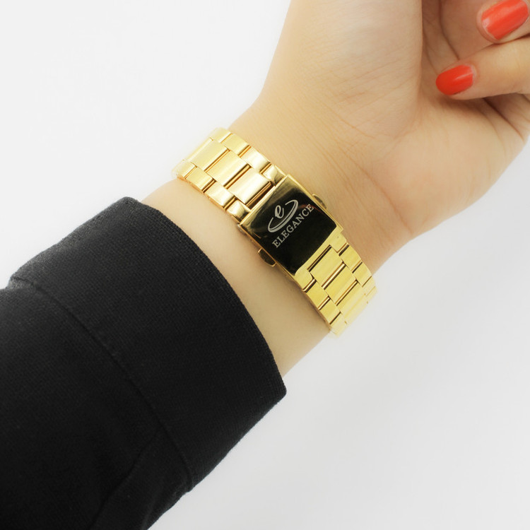 ساعت مچی عقربه ای زنانه الگانس مدل 88196 بی شک جزو شیک ترین و خاص ترین ساعت های مچی عقربه ای زنانه می باشد. این ساعت مچی عقربه ای زنانه الگانس مدل 88196 بدلیل ترکیب رنگ های خاص و زیبا نظر هر مخاطبی را به جلب میکند. ترکیب رنگ های طلایی و زرد در صفحه این ساعت مچی عقربه ای زنانه زیبایی آن را بی حد کرده است. این ساعت مچی عقربه ای زنانه الگانس مدل 88196 از ویژگی های بسیار برخوردار است و 3موتور فعال فول تایم می باشد. این ساعت مچی عقربه ای زنانه الگانس مدل 88196 دارای 1 عقربه نمایشگر تقویم ، 1 عقربه نمایشگر ساعت 1 تا 24 ، 1 عقربه نمایشگر ایام هفته می باشد. موتور این ساعت مچی ژاپن است. جنس بند و قاب این ساعت استیل درجه 1 آنتی آلرژی می باشد. ترکیب رنگ های جذاب باعث شده این ساعت مچی با هر تیپ و استایلی به راحتی استایل شود. این ساعت مناسب برای خانم ها شیک پوش و دقیق می باشد که استایل و زمان برایشان مهم می باشد.