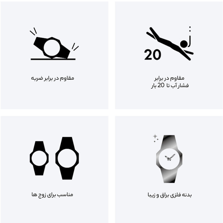 قابلیت نمایش 24 ساعته , تاریخ شمار , نور پس زمینه , تایمر , آلارم