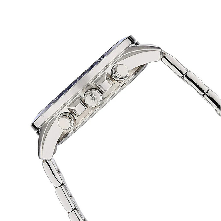 ساعت مچی کلاسیکاسپرت «کاسیو» مدل «Casio EFR-552D-1A2VUDF» یکی از سری ساعتهای کلاسیکاسپرت «ادیفایس» (Edifice) از این برند ژاپنی است که با ترکیب رنگ نقرهای، مشکی و کمی آبی توجه بسیاری از آقایان را به خود جلب میکند. این مدل دارای قابی با عرض تقریبی 47 میلیمتر است که سایز نسبتا بزرگ و البته قابلقبول برای این سبک از ساعتهای مردانه محسوب میشود. بر روی صفحهی بزرگ ساعت، شاهد چهار شمارشگر هستیم که به قابلیتهایی مختلف مربوط میشوند. در بین نشانگرهای ساعت چهار و پنج، شاهد یک تاریخشمار با ارقام مشکیرنگ هستیم که شاید کاربردیترین قابلیت ساعت به شمار آید. در بالای این تاریخشمار هم شاهد صفحهای برای نمایش حالت 24 ساعته هستیم که در کنار زیبایی و کارایی معمول برای تنظیم سریعتر تاریخشمار نیز استفاده میشود. دو شمارشگر دیگر که یکی از آنها به صورت نیمگرد (retro-grade) طراحی شده به قابلیت مهم کرنوگراف یا زمانسنج مربوط میشوند. این مدل با توجه به موتور کوارتز ژاپنی، بند و بدنهی استیل و مقاومت بالا در برابر آب کیفیت و ماندگاری قابلتوجهی دارد. با مقاومت در برابر آب تا فشار ده بار یا صد متر در تقریبا تمام موقعیتهای روزمره، از شستوشوی دست گرفته تا مواردی که ممکن است ساعت کمی بیشتر با آب در تماس باشد، از نفوذ آب به بدنه جلوگیری خواهد شد. در مجموع اگر قصد خرید یک ساعت کلاسیکاسپرت باکیفیت و ماندگار را دارید، این مدل با مشخصات ذکرشده و کیفیت و ماندگاری بالا، انتخابی عالی برای آقایان طرفدار این سبک و رنگ و البته هدیهای باارزش و بادوام خواهد بود.