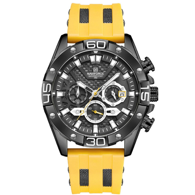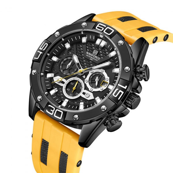 ساعت نیوی فورس با بند رابر خیلی مقاوم و محکم می باشد .. این ساعت سه موتوره فعال است و نشانگر تا یخ هم دارد . بسیار مناسب پسران و نوجوان است و همراه با جعبه و بسته بندی می باشد که مناسب هدیه دادن است . بدنه ساعت ضد خش و ضد ضربه استیل می باشد . شب تاب است . قفل کمربندی دارد . ضد آب تا 3 اتمسفر است .