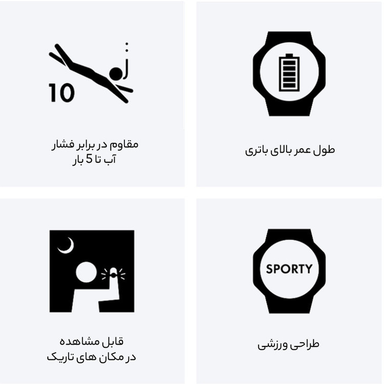 قابلیت نمایش 24 ساعته , تاریخ شمار , نور پس زمینه , آلارم