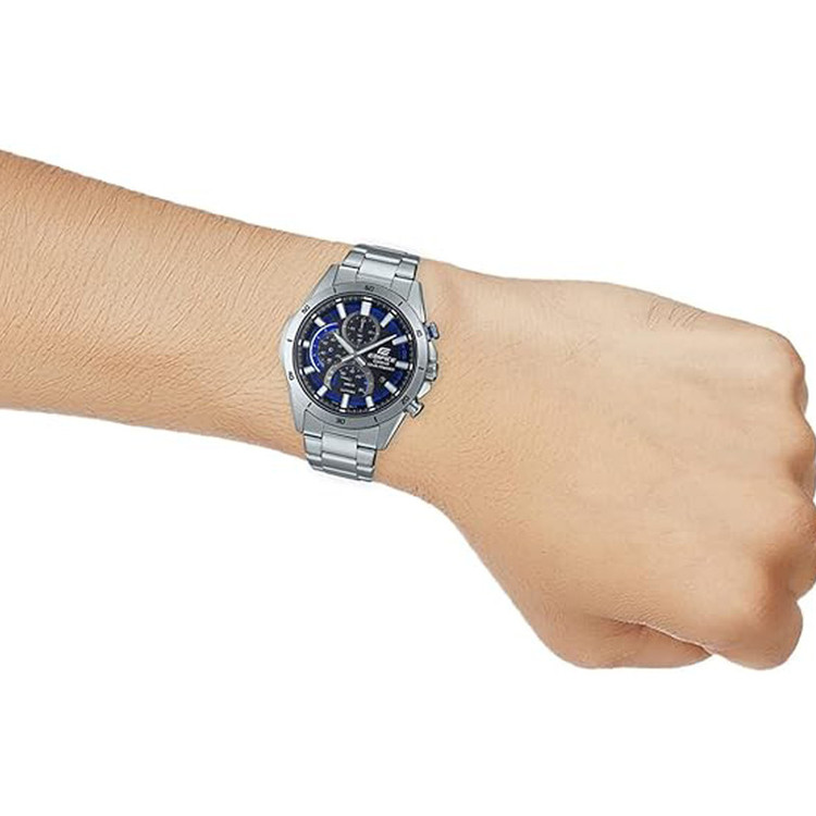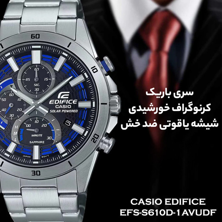 ساعت مچی عقربهای مردانه کاسیو مدل EFS-S610D-1AVUDF، گزینهای بینظیر برای آقایانی است که به دنبال ترکیبی از استایل، عملکرد و دوام هستند. این ساعت با صفحه چند رنگ و قطر 45 میلیمتری، جلوهای شیک و مدرن به مچ دست شما میبخشد. بدنه و بند استیل نقرهای آن، نمایی لوکس و کلاسیک ایجاد میکند و شیشه معدنی مقاوم در برابر خط و خش، طول عمر آن را تضمین میکند. موتور کوارتز با انرژی خورشیدی، نه تنها دقت بالایی دارد بلکه نیاز به تعویض باتری را نیز از بین میبرد. ویژگیهای خاصی مانند تاریخ شمار، عقربههای شبتاب و کرنوگراف، این ساعت را برای استفاده روزمره و موقعیتهای کلاسیک مناسب میسازد. قفل ضامندار (کلیپسی) بند استیل، راحتی و امنیت بیشتری را فراهم میآورد. با ضخامت بدنه 9 میلیمتر و مقاومت در برابر فشار آب تا 10ATM، این ساعت در شرایط مختلف کارآمد است. اگر به دنبال ساعتی هستید که هم در جلسات رسمی و هم در موقعیتهای روزمره جلوهگر باشد، ساعت کاسیو مدل EFS-S610D-1AVUDF، انتخابی ایدهآل برای شماست.