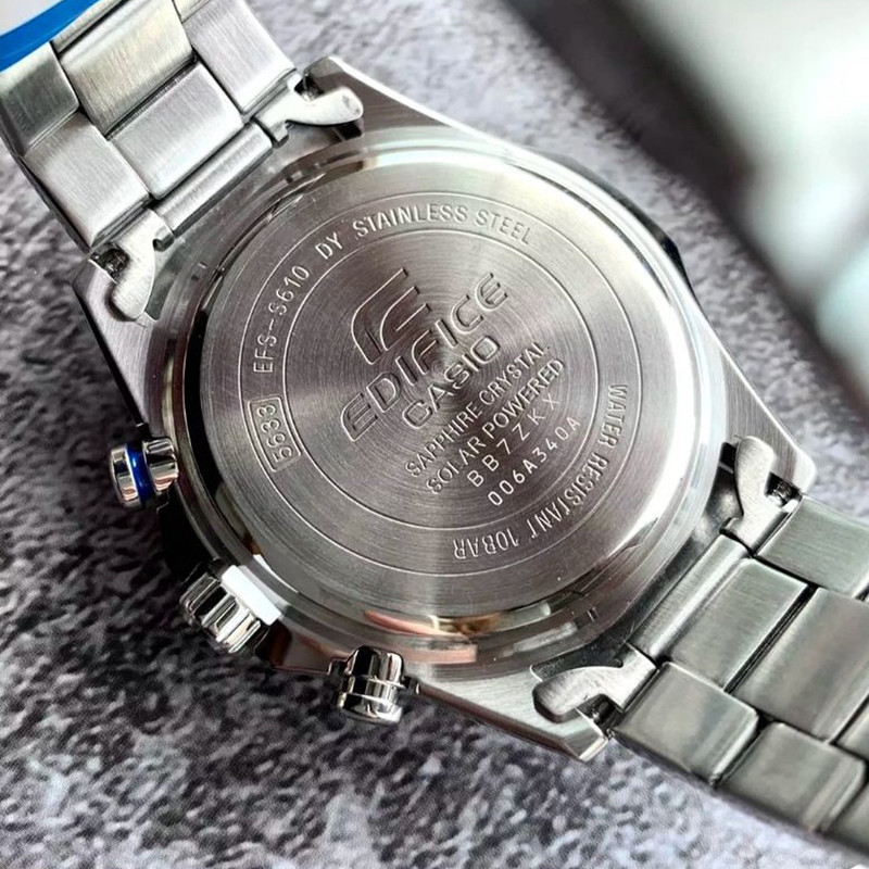 ساعت مچی عقربهای مردانه کاسیو مدل EFS-S610D-1AVUDF، گزینهای بینظیر برای آقایانی است که به دنبال ترکیبی از استایل، عملکرد و دوام هستند. این ساعت با صفحه چند رنگ و قطر 45 میلیمتری، جلوهای شیک و مدرن به مچ دست شما میبخشد. بدنه و بند استیل نقرهای آن، نمایی لوکس و کلاسیک ایجاد میکند و شیشه معدنی مقاوم در برابر خط و خش، طول عمر آن را تضمین میکند. موتور کوارتز با انرژی خورشیدی، نه تنها دقت بالایی دارد بلکه نیاز به تعویض باتری را نیز از بین میبرد. ویژگیهای خاصی مانند تاریخ شمار، عقربههای شبتاب و کرنوگراف، این ساعت را برای استفاده روزمره و موقعیتهای کلاسیک مناسب میسازد. قفل ضامندار (کلیپسی) بند استیل، راحتی و امنیت بیشتری را فراهم میآورد. با ضخامت بدنه 9 میلیمتر و مقاومت در برابر فشار آب تا 10ATM، این ساعت در شرایط مختلف کارآمد است. اگر به دنبال ساعتی هستید که هم در جلسات رسمی و هم در موقعیتهای روزمره جلوهگر باشد، ساعت کاسیو مدل EFS-S610D-1AVUDF، انتخابی ایدهآل برای شماست.