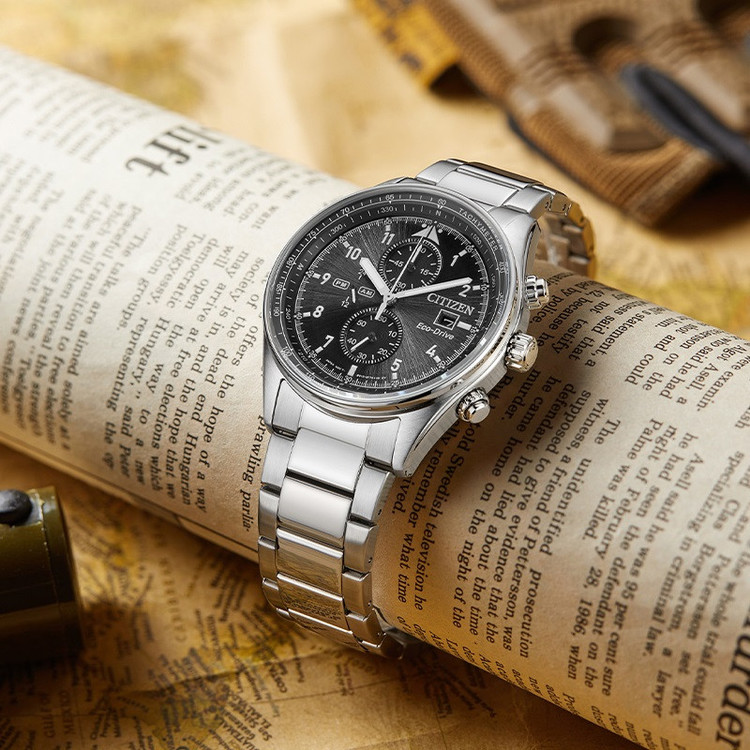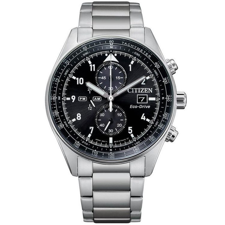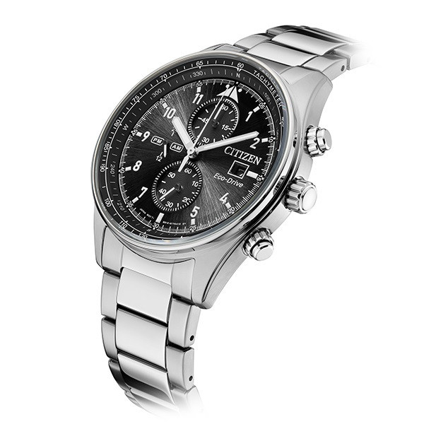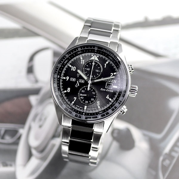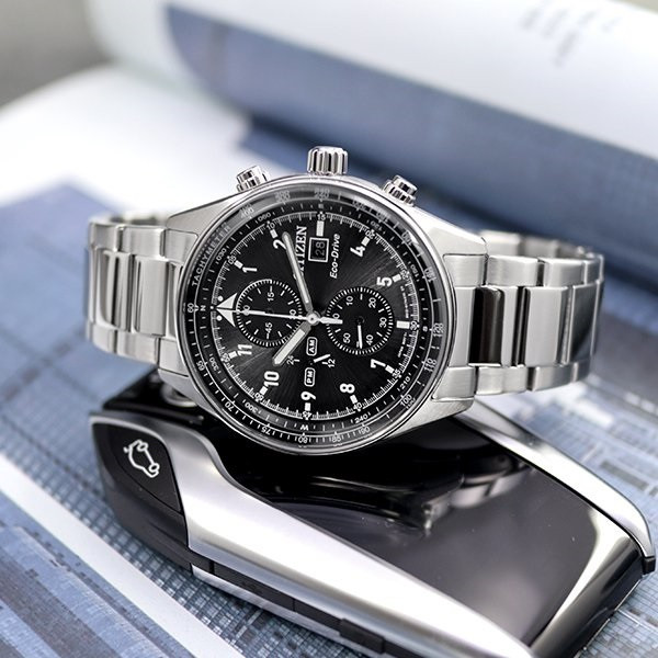 این مدل از ساعت مچی های برند سیتیزن اکودرایو بوده و قابلیت شارژ باطری با نور را دارد و دارای بدنه و بند با رنگ نقره ای و صفحه مشکی رنگ می باشد. از امکانات منحصر به فرد این ساعت میتوان به کرنوگراف یا چند موتوره بودن آن، نمایشگر روزهای ماه و وضعیت 24 ساعته و ذخیره شارژ باطری تا 7ماه که تعبیه شده در این ساعت اشاره کرد. اکودرایو ها جزو ساعت های رده بالای شرکت سیتیزن هستند و در مدت بسیار کمی مورد پسند و تحسین مردم قرار گرفتند. اعداد کوچک دور این صفحه ی ساعت نیز سرعت سنج میباشد.