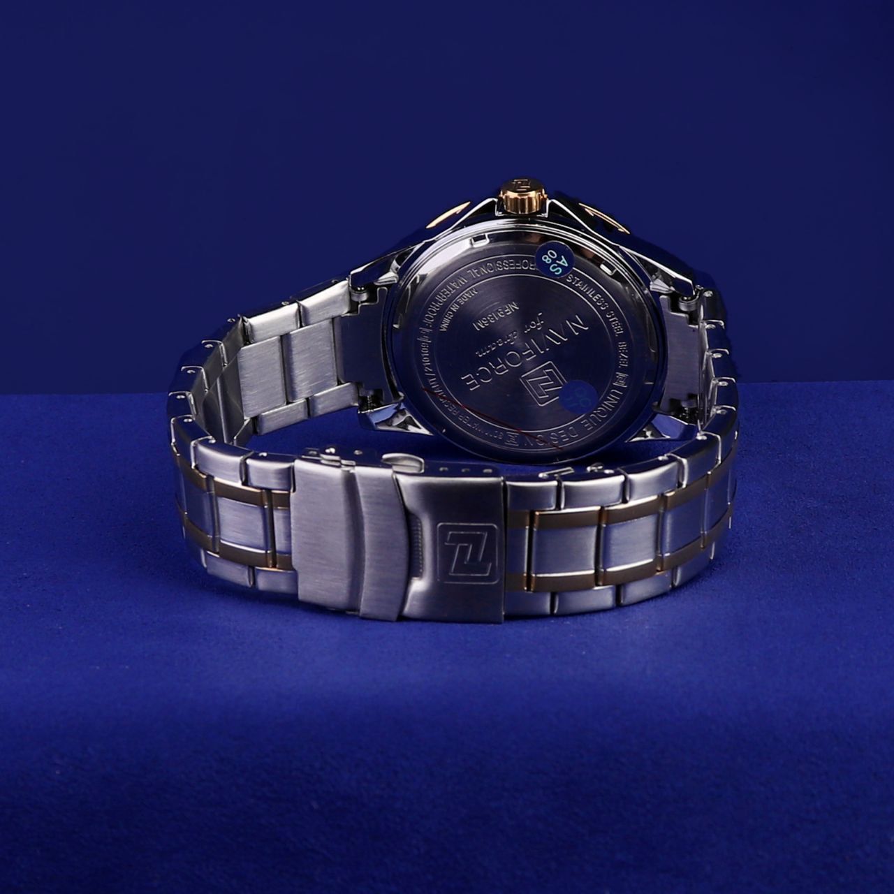 ساعت مچی مردانه عقربه ای نیوی فورس اورجینال مدل NF9186 است وزن 152گرم می باشد ضد حساسیت است شیشه ضدخش دارد مقاوم در برابر آب است قطر صفحه 44.5میلیمتر می باشد موتور سیکو ژاپن است