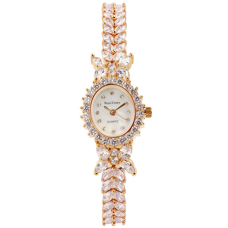 ساعت مخراج کاری شده با نگین های کوبیک زیکونیای اتمی و ضد ریزش میباشد.