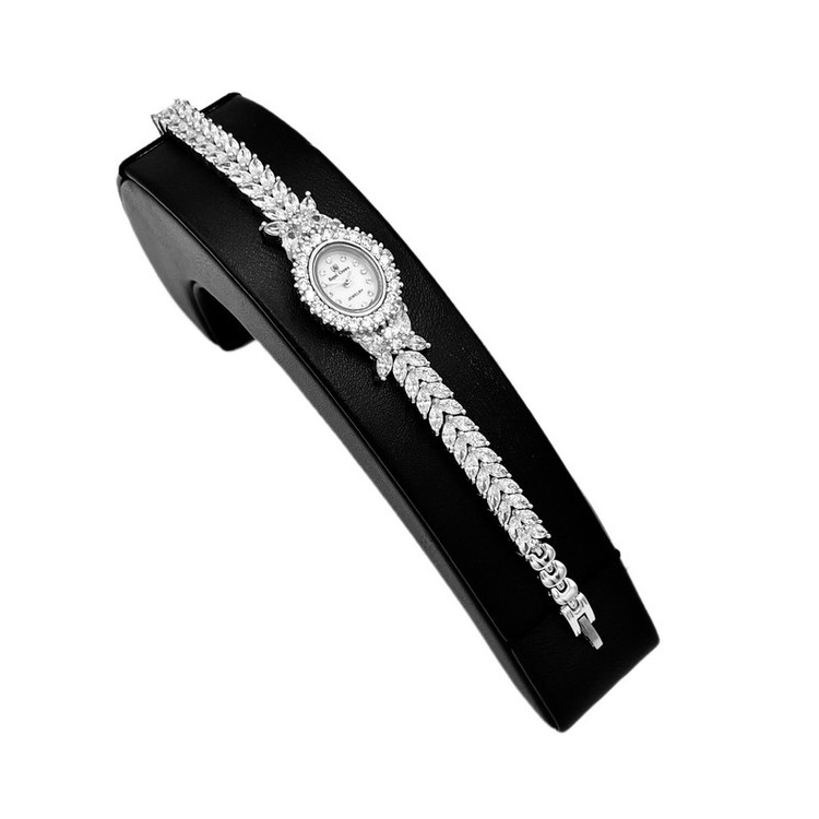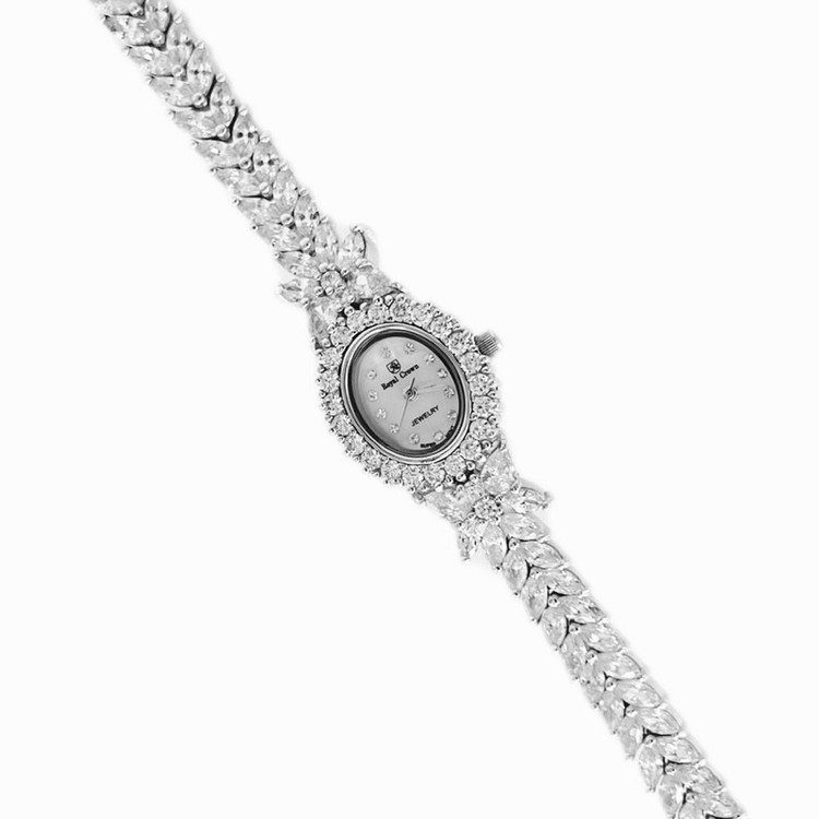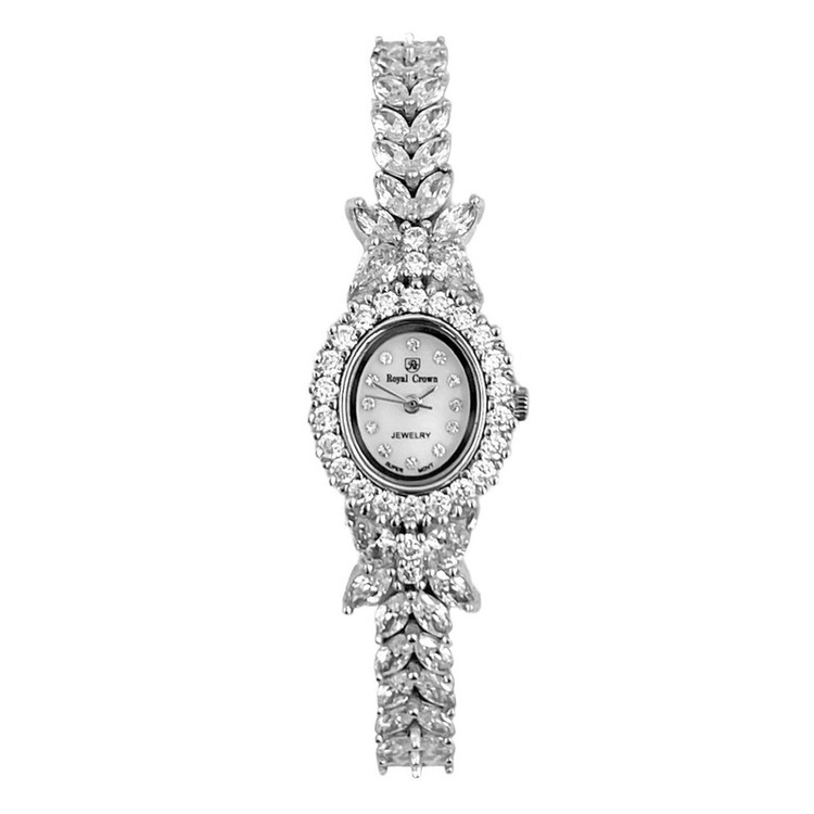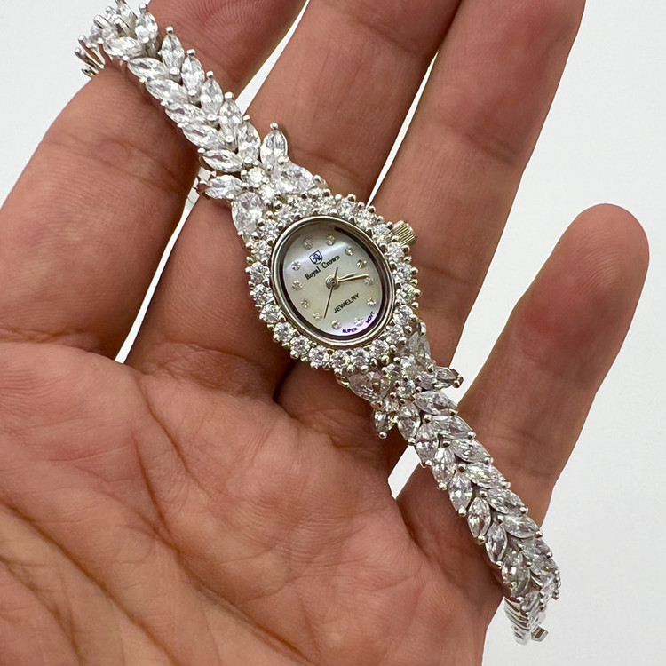 همان طور که می دانید، یکی از اکسسوری های پر کاربرد برای تکمیل استایل بانوان ساعت مچی بوده که از اهمیت بالایی برخوردار است. ساعت مچی زنانه مدل از محصولات برند رویال کرون (Royal Crown) است. این ساعت از بدنه و بند نقره با عیار 925 ساخته شده است و کیفیت نسبتا بالایی دارد. این ساعت از صفحه نمایشی گرد طراحی شده که متناسب با مچ دست بانوان تولید شده است. داخل صفحه نمایش دارای دو عدد اصلی رومی به رنگ نقره ای جهت نمایش ساعت وجود دارد. بند ساعت با قفل تاشو با محافظ از جنس استیل باز و بسته می شود. استفاده از رنگ نقرهای در ساخت این ساعت موجب شده تا بتوانید این اکسسوری زیبا را با هر استایلی ست کنید. استفاده از کریستال های کوبیک زیرکنیا دور تا دور قاب و روی بند ساعت موجب درخشش بیشتر این محصول شده است و نمای زیباتری روی مچ دست شما دارد. جنس پشت ساعت و قفل آن از استیل تهیه شده است.