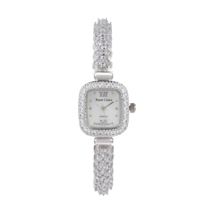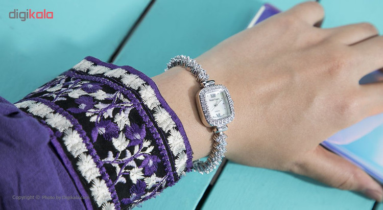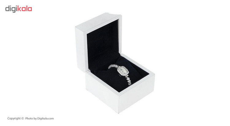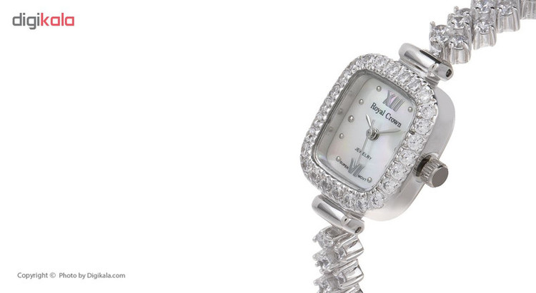 این ساعت زنانه با دارا بودن فرم صفحه مستطیل شکل و حاشیه کار شده با بهره گیری از کریستالهای Cubic Zirconia با عیار AAA که ساخت کشور اتریش هستند، جلوه فوق العاده شیک و زیبایی بویژه روی مچ دست بانوان مسن و میانسال با دستانی ظریف خواهد داشت. از طرفی بواسطه طراحی خاص خود و بندی که آن هم پوشانده شده از کریستال است ساعت مناسب استخوان بندی متوسط نیز خواهد بود، جنس این ساعت تماما از نقره با عیار 925 است و تنها قفل ضامن دار آن است که از استیل ضد زنگ ساخته شده. موتور این ساعت توسط کشور ژاپن تولید شده و از کیفیت ساخت و دوام بالایی برخوردار است. این ساعت دارای جعبهای چوبی است و برای هدیه گزینه بسیار مناسبی خواهد بود. طراحی این کالا به گونهای است که باعث میشود با اکثر استایلها ست شود و مناسب استفاده در موقعیتهای رسمی و مجلسی باشد. کیفیت ساخت و دوام این کالا بسیار مطلوب بوده و قطعا از خریدن این کالا که ساخته شده توسط برند رویال کرون است، پشیمان نخواهید شد. جنس پشت ساعت و قفل آن از استیل تهیه شده است.
