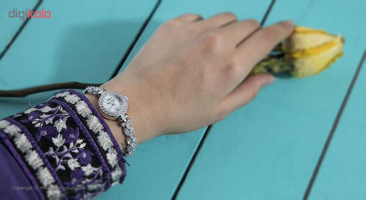 این ساعت دارای صفحهای دایره شکل با ابعادی کوچک است که این طراحی ظریف استفاده آن را برای افرادی با مچ دست لاغر آسانتر و کاربردیتر کرده و بر جذابیت ظاهری ایشان خواهد افزود. این ساعت زنانه که طراحی ظریف و زیبا و شگفت انگیزی دارد، در همه نقاط به جز قفل از نقره 925 عیار ساخته شده و پوشیده شده از کریستالهای کوچک و درخشان است که بر جلوه آن افزودهاند. جنس قفل این ساعت از استیل ضد زنگ بوده و نوع آن ضامن دار است. جنس کریستالهای استفاده شده در این ساعت Cubic Zirconia با عیار AAA است و توسط کشور اتریش تولید شدهاند، همچنین موتور این ساعت توسط کشور ژاپن تولید شده و از کیفیت ساخت و دوام بالایی برخوردار است. این ساعت دارای جعبهای چوبی است و برای هدیه به همسر و مادر و یا عزیزان انتخابی شیک و لوکس خواهد بود. با توجه به نوع طراحی و ساخت این ساعت، مناسب موقعیتهای رسمی و مجلسی خواهد بود. جنس پشت ساعت و قفل آن از استیل تهیه شده است.