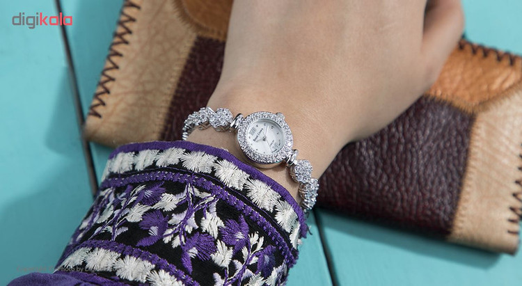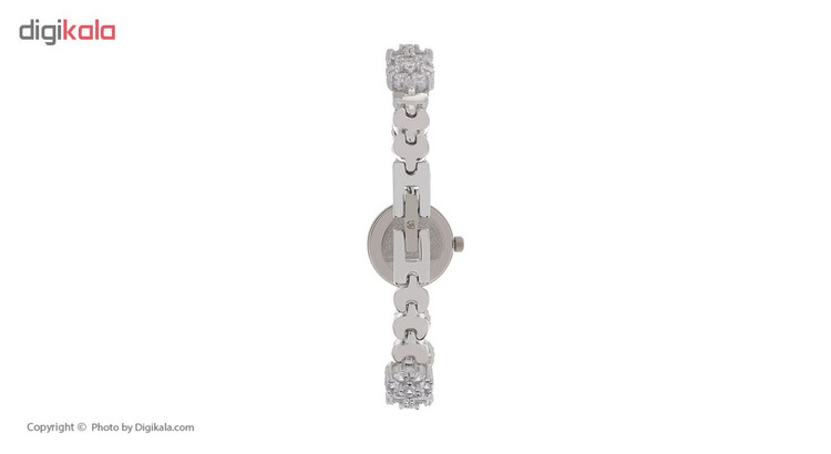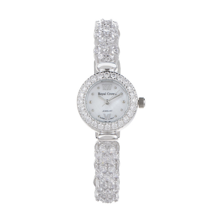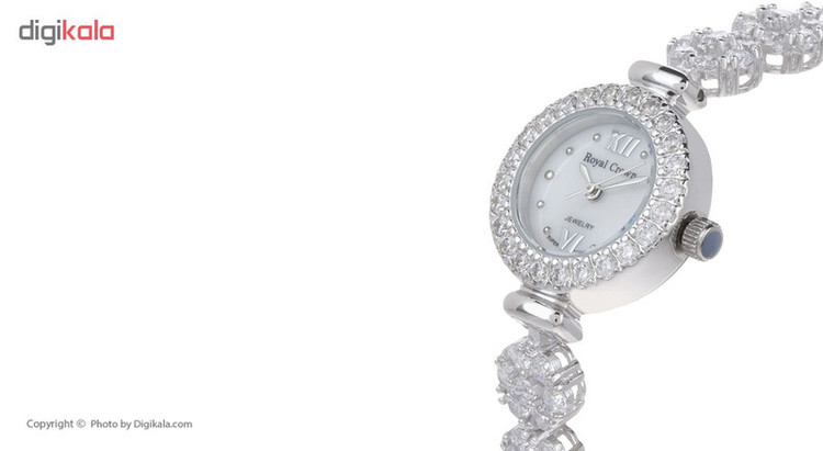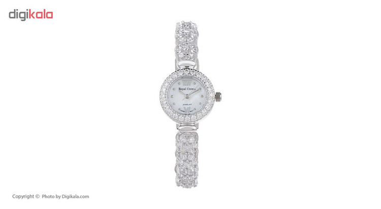 یکی از اکسسوریهای پرکاربرد برای تکمیل استایل خانمها ساعت مچی است. برند رویال کرون (Royal Crown) یکی از برندهای مطرح و مشهور در زمینه تولید انواع ساعتهای مچی است. این برند با استفاده از جواهرات و سنگهای قیمتی روی محصولات خود سعی در تولید انواع ساعتهای مچی شیک و مدرن را دارد. ساعت مچی زنانه مدل «RC5266-5» از تولیدات این برند است. این ساعت از صفحه گرد به قطر 22 میلیمتر تهیه شده است. بدنه و بند ساعت از نقره با عیار 925 تهیه شده است. نگینهای کریستالی به کار رفته روی ساعت «Cubic Zirconia» است و موجب زیبایی و درخشش ساعت شده است. رنگ صفحه نمایش سفید صدفی است. داخل صفحه نمایش فاقد اعداد است و تنها از دو عدد رومی به جای عدد 12 و 6 استفاده شده است. این موضوع حالت رسمیتری به ساعت داده است. با این ساعت میتوانید استایل مهمانی و رسمی خود را تکمیل کنید. جنس پشت ساعت و قفل آن از استیل تهیه شده است.