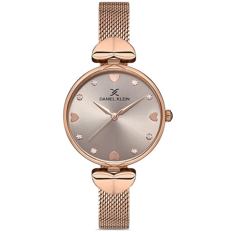 این طرح از برند ساعت زنانه دنیل کلین با طراحی خاص خود برای تیپهای مجلسی بسیار مناسب میباشد. بند و بدنه ی این ساعت دنیل کلین از جنس استیل است و از رنگ رزگلد در آن استفاده شده است. از ویژگیهای منحصر به فرد این ساعت میتوان به طراحی صفحه ی ساعت و نگینهای آن اشاره کرد که برای تیپهای مجلسی بسیار مناسب میباشد و همچنین طراحی بدنه ی این طرح از ساعت دنیل کلین بسیار متفاوت و شیک است که چشم هر بیننده ای را خیره میکند.