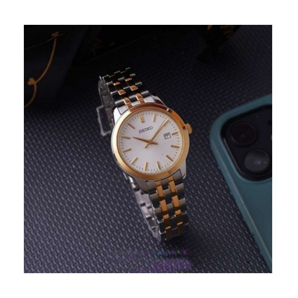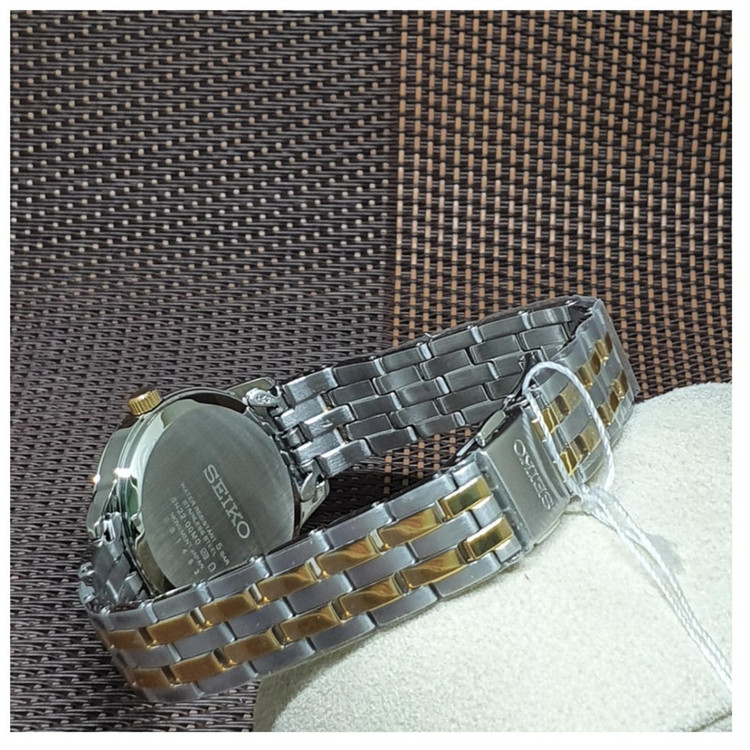 این طرح از برند ساعت سیکو با طراحی و رنگ خاص خود برای تیپهای مجلسی بسیار مناسب میباشد. بند و بدنه ی این ساعت سیکو از جنس استیل است که از ترکیب رنگهای طلایی و نقره ای در آن استفاده شده است. از ویژگیهای منحصر به فرد این ساعت میتوان به طراحی بسیار شیک و مجلسی ساعت در عین سادگی آن اشاره کرد. همچنین دارای نمایشگر روز های ماه نیز میباشد. همچنین این ساعت دارای سن مردانه میباشد.