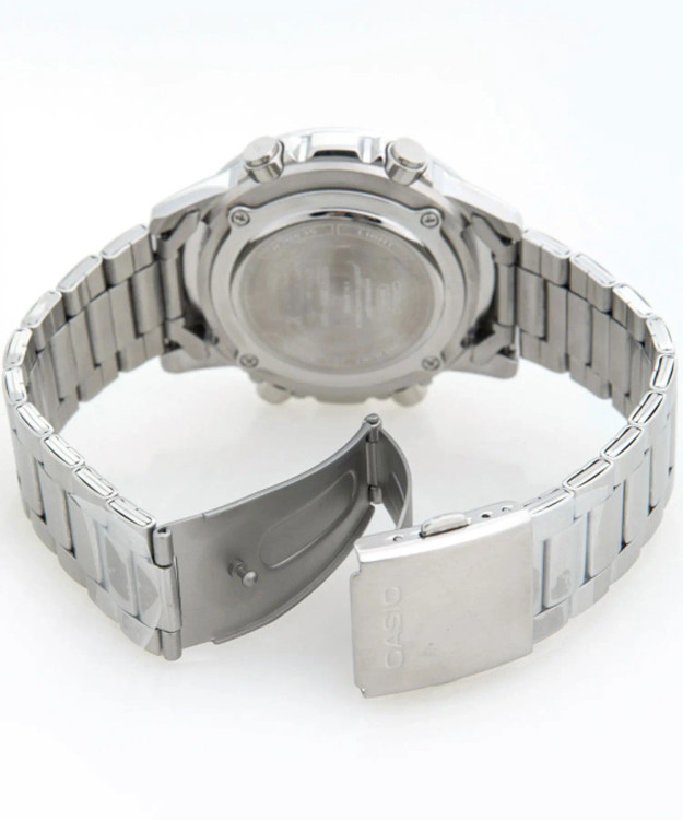 اگر به دنبال ساعتی هستید که هم وقار یک ساعت کلاسیک عقربهای را داشته باشد و هم امکانات هوشمند یک ساعت دیجیتال، ساعت مچی مردانه کاسیو مدل AMW-880D بهترین انتخاب برای شماست. این مدل یکی از محبوبترین سریهای برند کاسیو است که با صفحه بزرگ و طراحی مردانهی خود، توجه هر بینندهای را جلب میکند. بدنه تمام استیل و براق این ساعت، آن را برای استفاده روزمره، محیط کار و حتی مهمانیها مناسب کرده است.
