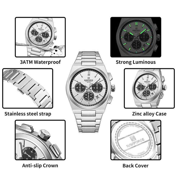 کرنوگراف ثانیه و دقیقه / نمایش روز ماه / نمایش 24 ساعت
