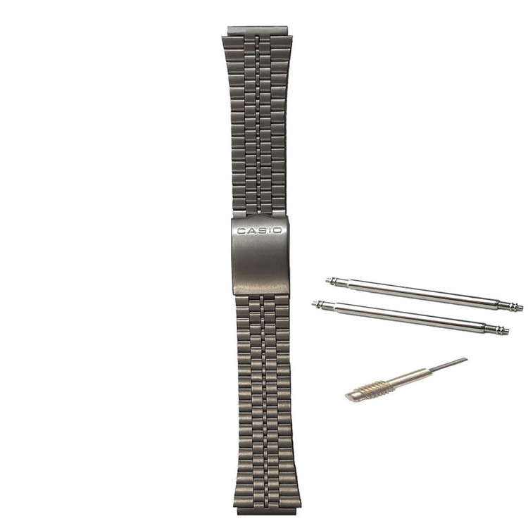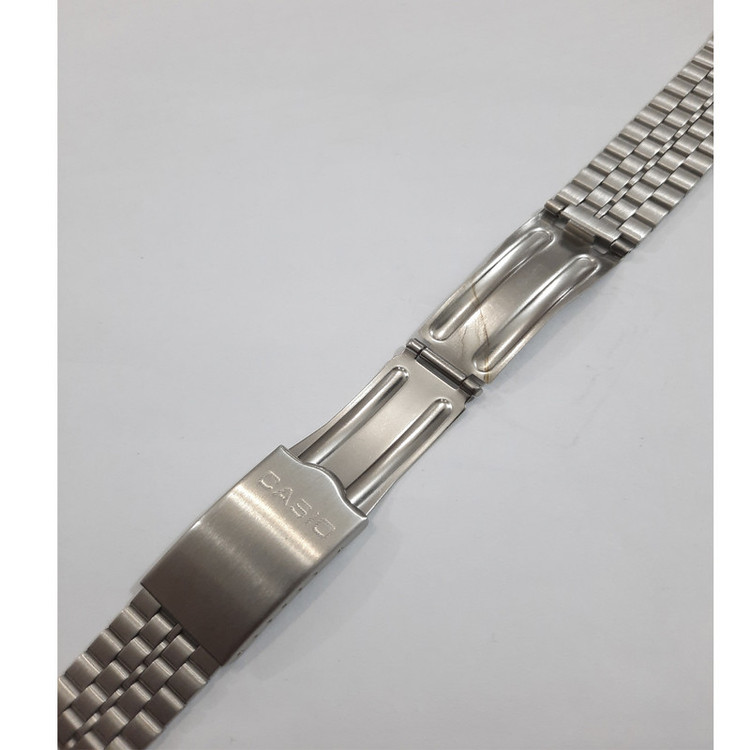 بند ساعت مچی کاسیو مدل A159 WA یک بند استیل رنگ ثابت مخصوص ساعت های کاسیو و هر ساعت دیگری که عرض بند 18 میلیمتر داشته باشد قابل استفاده میباشد که محل نصب بند به ساعت باید 18 میلیمتر باشد و به همراه پین و ابزار کوتاه کننده بند عرضه میگردد
