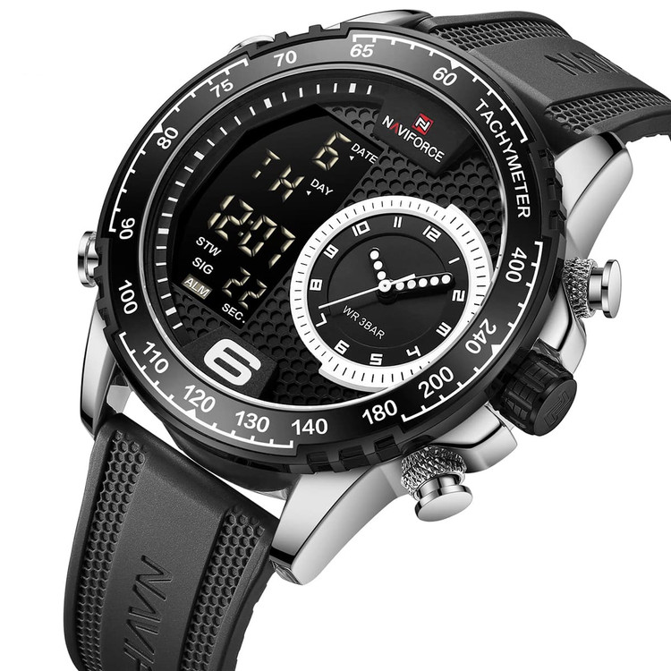 از پرطرفدارترین اکسسوریهای مردانه و زنانه، ساعتهای مچی هستند که در انواع مختلف عقربهای و دیجیتال در بازار عرضه میشوند. معمولا ساعتهای مچی دارای تقویم روزشمار نیز هستند که در دو نوع مکانیکی و کوارتز وجود دارند. ساعت مچی عقربه ای و دیجیتال مردانه نیوی فورس مدل NF9199 جدیدترین سری نیوی فورس دارای موتور قدرتمند کوارتز اپسون ژاپنی عقربه ای و دیجیتال است.این نوع محصول نیروی مورد نیاز خود را از طریق باتری تامین میکند و از امکانات آن میتوان به قابلیت نمایش ساعت دوم،تقویم،آلار، کرنومتر اشاره کرد.