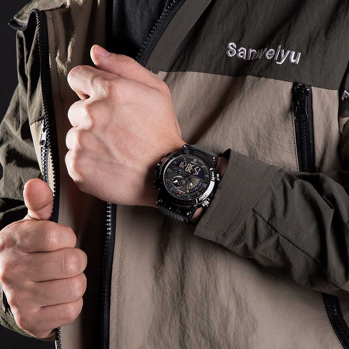ساعت مچی عقربه ای مردانه نیوی فورس مدل nf9219 دیجیتال _آنالوگ دارای موتور قدرتمند کوارتز است این نوع محصول نیروی مورد نیاز خود را از طریق یک باتری تامین میکند.این ساعت دارای جنس بدنه استیل ضخیم است و شیشه این ساعت معدنی تقویت شده و مقاوم در برابر خراش است.قفل ساعت مدل کلیپسی ضامن دار است..حک برند NAVIFORCE بر روی صفحه،قفل،سرکوک و درب ساعت. این ساعت عقربهای مردانه دارای ظاهری شیک و جذاب بوده و برای استفاده در هر شرایطی کاملا مناسب خواهد بود.
