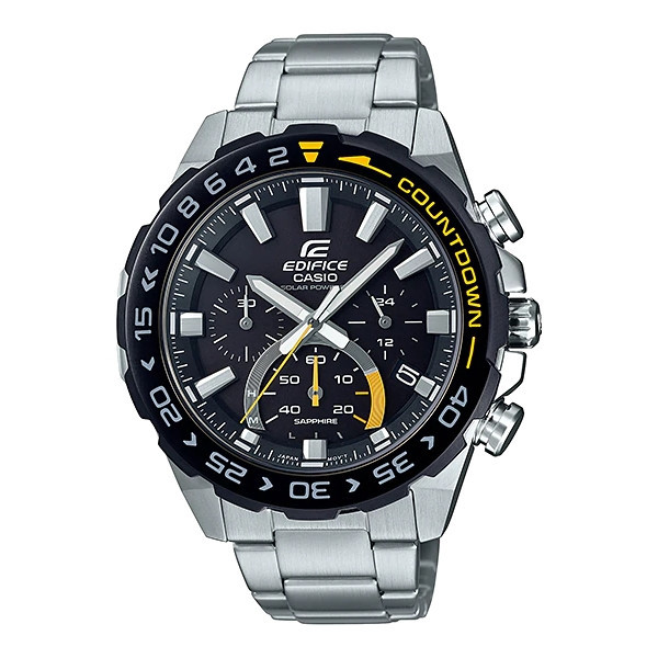 معرفی ساعتهای جدید EDIFICE با باتری خورشیدی و کریستال یاقوت کبود. به این مدلهای جدید سری EFS-S550 از ساعتهای مجهز به باتری خورشیدی EDIFICE که حتی با قرار گرفتن در معرض نور لامپ فلورسنت نیز شارژ میشوند کریستالهای یاقوت کبود که در برابر خراشیدگی بسیار مقاومند اضافه شده است. تیم مسابقه Scuderia Toro Rosso برای رقابت در مسابقات جهانی اتومبیلسواری F1، به صورتی مستمر محدودیتهای سرعت را زیر پا میگذارد، و برای سنجش سرعت آخرین فناوریها زماننگاری را بهکار میگیرد. EDIFICE با مشارکت با Scuderia Toro Rosso، خود را به عنوان پیشرو در زماننگاری مسابقات اتومبیلسواری به اثبات رسانده است. مدل EFS-S550 با راهنماییهای پرسنل کمکرسان Scuderia Toro Rosso تولید شده است. عملکرد باتری خورشیدی، کریستال یاقوت کبود با مقاومت زیاد در برابر خراشیدگی، و مقاومت در برابر آب تا عمق 100 متری با هم ترکیب شده تا این مدل ساعت را مدلی بسیار قابل اطمینان برای پرسنل کمکرسان به رانندگان مسابقه کند. یک قاب شمارش معکوس نیز در مدیریت نگهداری زمان به پرسنل کمک میکند. این قاب شمارش معکوس زمان مانده به رویداد برنامهریزی شده بعدی یا زمان باقیمانده تا تکمیل کارهایی که در حال انجام است را امکانپذیر میکند.