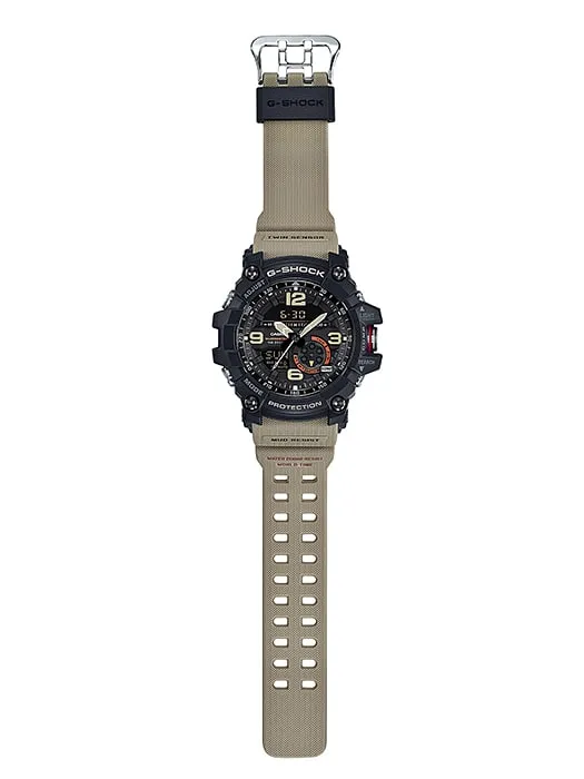 مدل Twin Sensor از سری G-Shock Mudmaster برای استفاده در محیطهای بسیار سخت و مملو از شن، گرد و غبار و آوار طراحی شده است. با فشار ساده یک دکمه بزرگ در موقعیت ساعت ۳، میتوانید موقعیت خود را با استفاده از قطبنما بررسی کنید. همچنین میتوان به راحتی با فشار دادن دکمه در موقعیت ساعت ۴، دما را اندازهگیری کرد. این مدل با در نظر گرفتن سهولت استفاده توسعه داده شده است و به هر کسی اجازه میدهد تا به طور شهودی موقعیت خود را با استفاده از قطبنما، حتی در شدیدترین آب و هواها، بدون مشاهده بصری بررسی کند. طراحی سیلندر دکمه مقاوم در برابر گرد و غبار و گل و لای، از ورود شن و ماسه ریز و گل به دکمهها جلوگیری میکند، ضربهها را جذب میکند و عملکرد آنها را بهبود میبخشد. عقربههای بزرگ ساعتشمار/دقیقهشمار و اعداد عربی بزرگ نیز برای افزایش دید در نظر گرفته شدهاند. این مدل دارای طراحی به سبک نظامی است، از جمله یک صفحه نمایش شیک که از یک صفحه دیسکی الهام گرفته از پینیون و یک بند بافتدار برای جلوگیری از لغزش استفاده میکند.